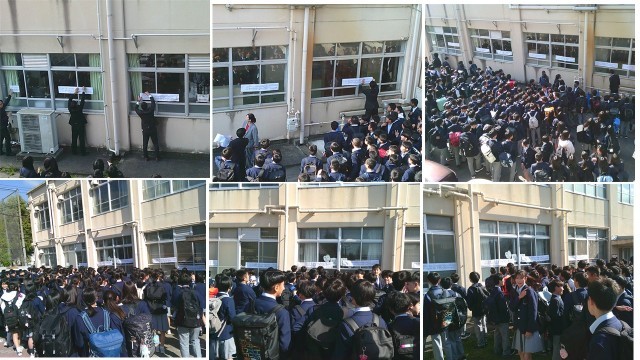 4月8日(水)朝、学級発表が行われました。学年の先生が学級発表の紙を貼りだすと、たくさんの生徒が紙の前に集まりました。様々な思いがあったかもしれませんが、人との出会いは「一期一会」と言います。今回同じ学級で出会った人たちが1年後にはかけがえのない存在になっているかもしれません。出会いを大切にしていってください。
