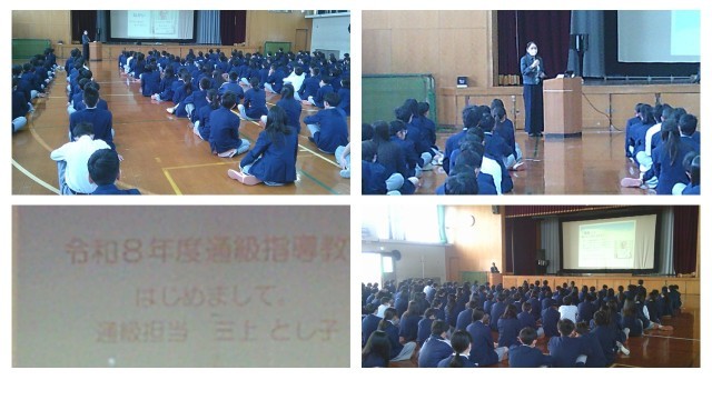 4月13日(月)2年生の学年集会が行われました。学年集会冒頭に「通級教室」についての説明が担当の先生から行われました。「通級教室は自分の苦手なところや得意なところなどをオーダーメイドで学習するところ」と説明がありました。今年度から修学院中学校には通級教室が常置になります。本人、保護者の希望、教員の見立てによって入級が決まっていきます。通級担当の先生のお話は1年3年で同様にしていただきます。