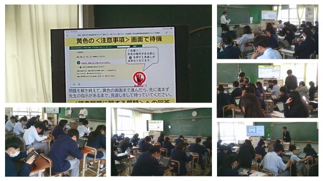 4月20日(月)全国学力学習状況調査の1日目が終わりました。数年前からタブレット端末を使っての回答になってきており、この日も「生徒質問紙」にはタブレット端末を使って回答していました。各教室では大型テレビに回答の設定から、回答場面が具体的に映し出され3年生の生徒は黙々と作業を進めていました。今週の木曜日には国語と数学の問題が行われます。全国の中学3年生全員が受ける調査であり、今後の学力観を先取りしたような問題が出題されます。3年生の頑張りを期待したいと思います。