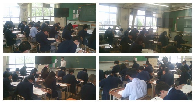 4月23日(木)全国学力・学習状況調査の国語と数学が行われました。全国学力学習状況調査(通称:全国学力テスト)は、文部科学省が毎年4月に全国の小6・中3のほぼ全児童生徒を対象に実施する調査です。国語、数学、英語に加え、生活習慣や学習環境の質問紙調査を行い、教育施策や学校の指導改善に役立てることを目的としています。修学院中学校の3年生は新学期初めてのテストになるので、緊張した雰囲気が各教室には漂っていました。