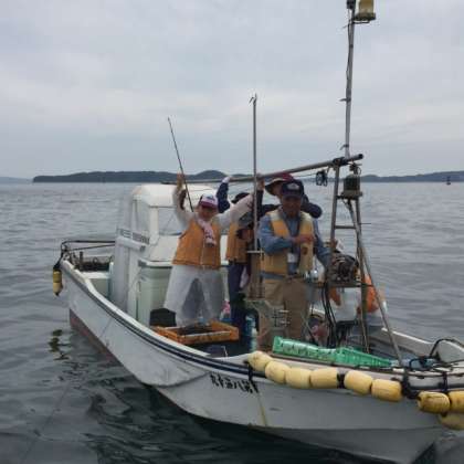 青島地区の海釣り体験です。たくさん釣れたかな。船酔いは,大丈夫でしたか。天気は良くて波は穏やかです。