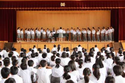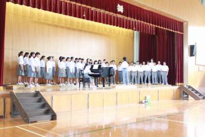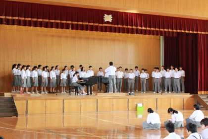 合唱コンクールに向けてプレコンクールが行われました。みんな指揮者を中心に一生懸命です。