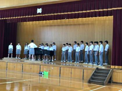 先日5日の午後に体育館で合唱コンクール本番に向けてのプレコンクールを行いました。