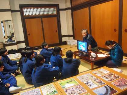 みんなで集まって、話をきいたり、作業したりしています。楽しそうです。