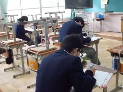 2月3日(土)3年生の土曜学習会が最終回を迎えました。公立前期選抜の出願も無事終了し,私学入試が来週に迫ってきた3年生のみなさん, 持参した問題集や赤本に集中して取り組んでいました。いよいよ入試が始まります。「これまで努力してきたんだ」という自信が,不安な気持ちを吹き飛ばしてくれるでしょう。100%の力を発揮できるように,体調には十分気を付けてください。応援しています!! 明るい未来に向けて, 頑張れ!!