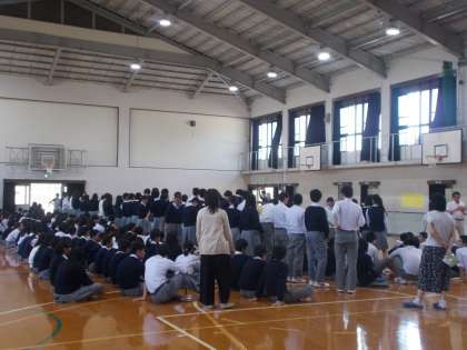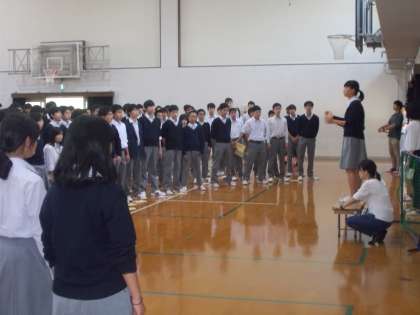修学旅行を明日に控えた5月25日(金),5限の時間帯に学年集会を開き,旅行中の集合隊形,入町式で披露する合唱「大地讃頌」の最終練習を行いました。集合隊形は基本,二段等限られた場所で機敏に行動出来る様に繰り返し練習しました。乗車するバスも都合4回乗り換えるので確認も丁寧に行いました。合唱「大地讃頌」も直前の昼休みの歌練習に続き,最終の仕上げを行いました。素晴らしい修学旅行を参加者全員で創り上げて行って欲しいと思います。