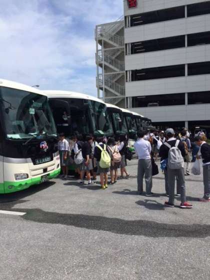 空港到着ロビーから移動し,これからバスに乗り平和記念公園へ向かいます。