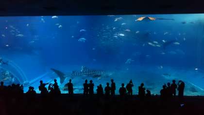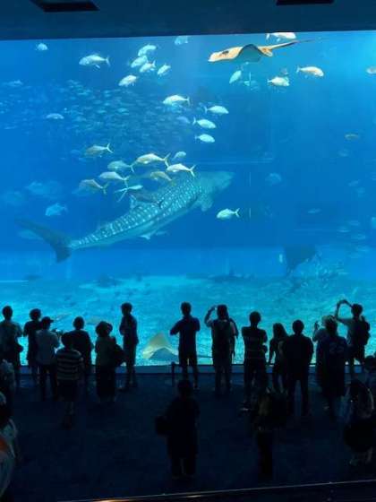 水族館のメインでもある「黒潮の海」にある容量7,500m³の大水槽では息をのむほど美しい光景を身にすることができます。