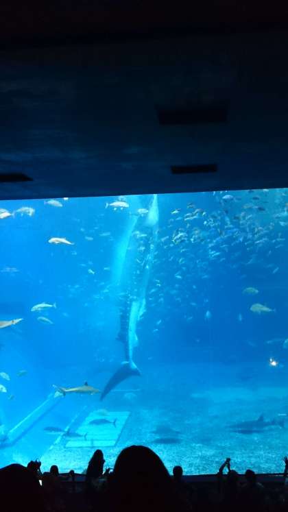 ちょうど美ら海水族館ではジンベエザメのご飯の時間と重なり,ジンベエザメがご飯と食べる瞬間を教員が見事に撮影しました。