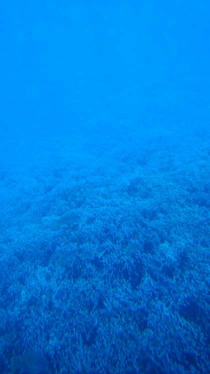 少し曇っているせいもあり,若干暗く見えますが非常に綺麗な青い海の中にいるサンゴ礁たちを見ることが出来ました。
