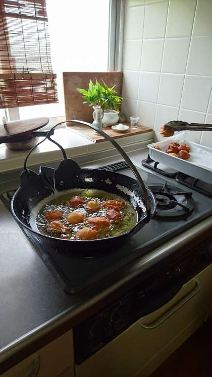沖縄のお菓子,サーターアンダギー作りにチャレンジしています。サーターアンダーギーとは,沖縄県の揚げ菓子の一種です。首里方言で,サーターは砂糖,アンダは油,アギは揚げる,語尾を伸ばすことで「油で揚げたもの」という意味になるそうです。砂糖を使用した生地を用いる球状の揚げドーナツということだそうです。さて,うまく調理できたかな?