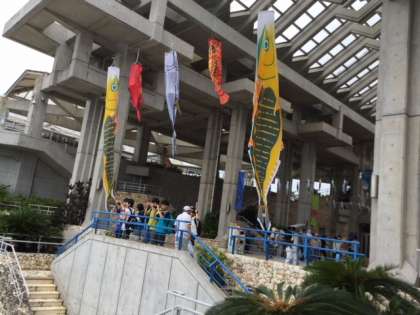 美ら海水族館とその周辺には,沖縄の自然と文化を感じる風景がたくさんあります。沖縄の鯉のぼりは,本州とは随分違ったものなんですね。