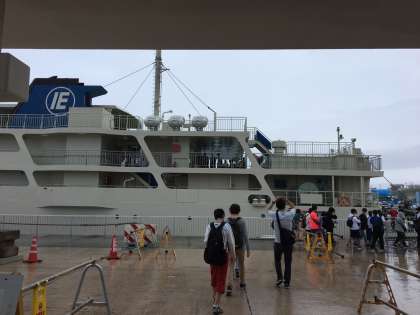 曇天の中,本部港からフェリーに乗り伊江島に上陸しました。
