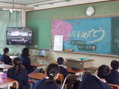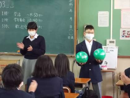 今日は生徒会の企画による「新入生歓迎会」がありました。本来なら体育館に全校生徒が集まって新入生の入学をお祝いしたかったのですが,予定を変更して放送で行いました。事前に生徒会本部と全校生徒が作成したビデオメッセージや,昨年度の体育祭のようすや合唱などを見てもらいました。1年生のみなさんにも,洛中生の「一生懸命がかっこいい」という伝統を感じてもらえたことと思います。学級ボールなどのプレゼントもありました。最後に生徒会本部の人からは,新型コロナに感染しないようにするために・・というアピールもしてもらいました。