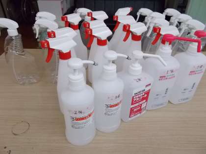 さて,すでにホームページでお知らせしていますように,来週に相談・面談日を設定しています。再来週には登校日もあります。(電話でも順次お知らせさせていただいています。また本日発送の郵便でもお知らせする予定です。)久しぶりにみなさんに会えるのを楽しみにしています。また,みなさんが安心して登校できるように,感染予防については万全の準備をすすめています。上の左の写真は,各クラスに設置する消毒液です。(スプレー容器や消毒液の確保については,保護者の方からも協力をお申し出いただきました。ありがとうございました。)右の写真は,机や椅子,手すりなどを消毒するためのグッズです。みなさんが登校する前と後には全教室を消毒します。