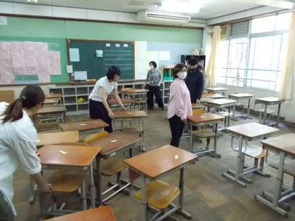 来週からの学校再開にむけて,教室の準備もすすめています。