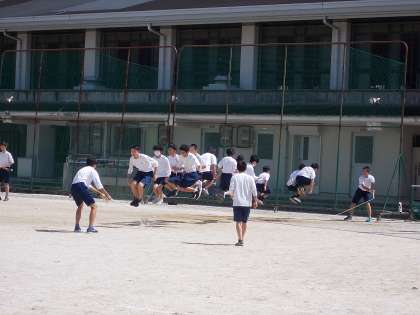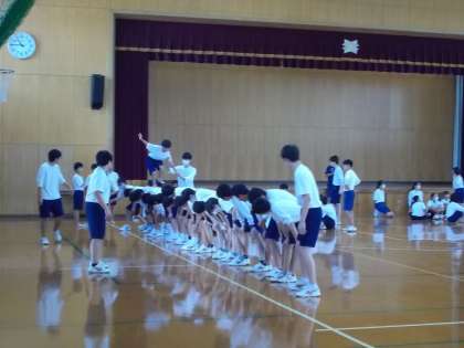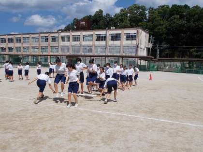 10月1日の体育祭に向けて,今日から体育の時間に縦割競技の練習をしています。3学年が3つの色別チームに分かれて団体競技に取り組みます。写真上から,大縄跳び,波乗りジョニー,バンブーサーフィンです。3年生が今までの経験をもとに1,2年生にいろいろと指示を出しながら,楽しそうに取り組んでいます。コロナ感染予防のため例年通りにできないこともたくさんありますが,それでもやっぱり仲間と一緒に何かに取り組む時間というのはいいものですね。みんなステキな笑顔でがんばっています。