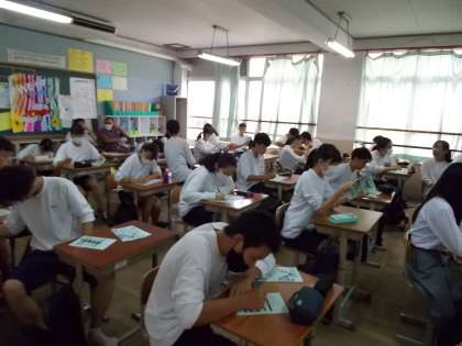 来週の修学旅行に向けて,今日の7限目に“しおり”を使って行程や持ち物,ルールなどを確認しました。ルールやマナーを守って,安全で楽しい3日間にしましょう。
