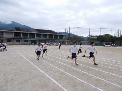 1時間目は2年生の学年体育でした。体育祭に向けて諸注意のあと100m走の試走をしました。「一生懸命がかっこいい」・・練習とはいえ手をぬかず最後まで一生懸命に走り抜ける姿はかっこよかったです。
