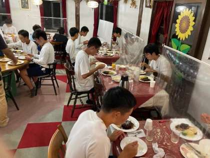 各ペンションに着いて,楽しく夕食を食べました。屋外レクでたくさん体を動かしたのでおなかペコペコだったでしょうね。