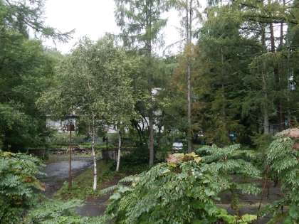 長野県白馬は雨模様です。バルーン体験は明日に延期になりました。パラグライダー体験はマウンテンバイクに変更です。今のところ受診が必要な体調不良や怪我はありません。全員これから体験活動に出発します!(写真はペンションの部屋からの景色です。ちょっと雨模様ですが,信州の爽やかな空気が感じられます!)