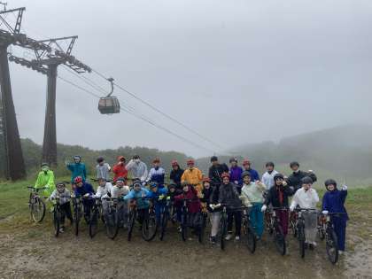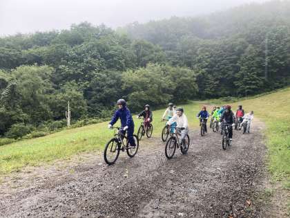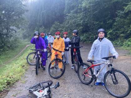 マウンテンバイクの写真が届きました。雨の中でしたが全員無事に山をおりられたそうです。林道を下るスリルを味わいながら楽しめました!とのことです。晴れたらもっとよかったのに・・と思いますが,雨の中のマウンテンバイクもきっと楽しい思い出として残るでしょうね!