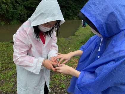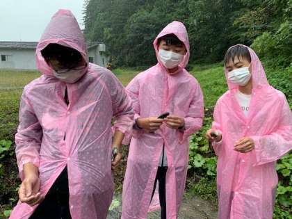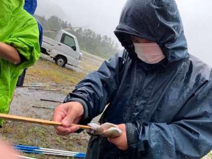 魚釣りの写真が届きました!全員ニジマス,イワナが釣れたそうです!雨が降り続く中ですが,みんな生き生きと活動しています,と報告が届いています。