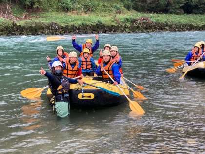 白馬の天気は回復傾向!雨もあがったそうです。さあラフティングのスタートです。