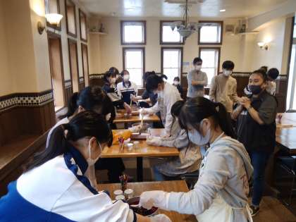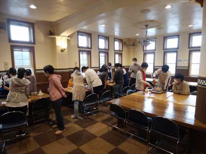 奇数クラスは,午前中ラフティングを楽しみ,午後からは選択体験です。写真はジャムづくりに取り組んでいるところです。部屋全体に甘い香りが漂っています。