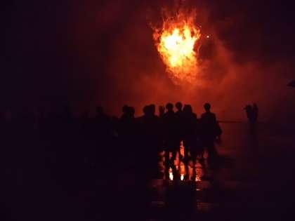 大きな花火が打ち上げられるたびに,大歓声が花火師さんの所まで届いていたそうです。3年生へのエールの花火。真上で開く大きな花と大きな音は、忘れられない想い出になったでしょう