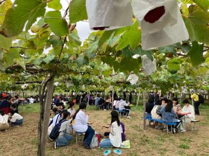 修学旅行 ブドウ園で昼食