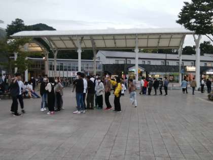 多賀SAで最後の休憩です。17:50バス内集合で一路京都に向かいます。「まだ帰りたくない!」との声が聞こえます。(いやいや・・気持ちはわかるけれど帰ってください。みんな待ってますよ!)