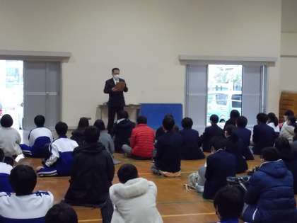 今日の5限目,武道場に集まって先生方から激励をうけました。校長先生は,「受験生に贈る言葉」でネット検索すると有名人のいろいろな励ましの言葉が見つかりますよ,と紹介してくださいました。勉強の息抜きにちょっと検索してみてはどうでしょう。