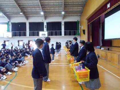 2,3年生の取組は,動画による紹介でしたが,1年生はきっと期待と安心感を持ってくれたことでしょう。体育委員によるエールやダンス,本部役員の人たちによるプレゼントの贈呈や洛中クイズもあり,たった1時間の取組でしたが,内容の濃い充実したものでした。