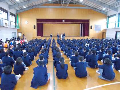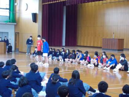今日の午後から生徒会主催で,生徒会や委員会活動,部活動のオリエンテーションを実施しました。感染防止対策のため,1年生だけが体育館に入り,2,3年生は教室でリモートによる参加でした。