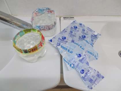 保健委員会の取組の一つとして,トイレの消臭剤を作成・設置しています。トイレが快適に使えるように,保健委員の生徒たちが定期的に補充していますが,消臭剤の材料に使っている『保冷剤』が不足しています。ご家庭でご不要になりました『保冷剤』(写真のようなもの)がありましたら,ぜひ学校へ持ってきていただけると大変助かります。お子様に持たせていただいてもかまいませんし,三者懇談などで来校される際にお持ちいただいてもかまいません。