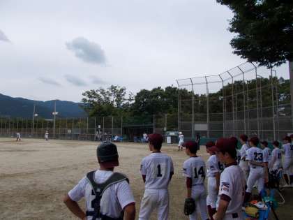 10日(土)勧修寺グランドにて1回戦が行われました。雨は降りませんでしたが,グランドに浸み込んだ水分が蒸発する熱気で選手のスタミナを消耗する環境でした。