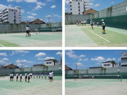夏休み初日。朝から厳しい日差しの中,女子テニス部の団体戦が行われました。
