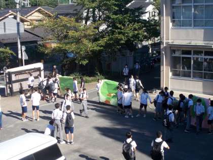 生徒会では気持ちよく1日がスタートできるように「あいさつの木」という運動を,主に生徒会本部・代議委員会・生活委員会が中心になって今日から始めました。