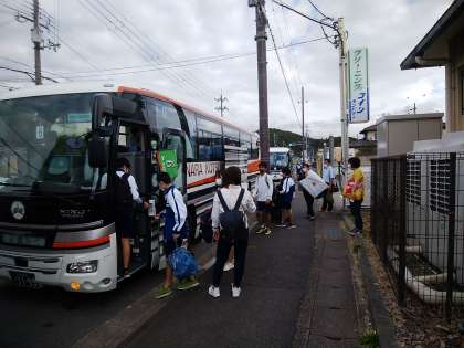 先程学校を出発し,バスに乗車しました。和歌山へ向けてLet's Go!