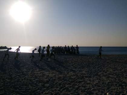 写真は今日最後の訪問地の白良浜です。思わず裸足で駆けてしまいたい気分になるきれいな砂浜ですね。・・なんとすでに走っている人がいるようです。この後バスで今日宿泊するホテルに向かいます。