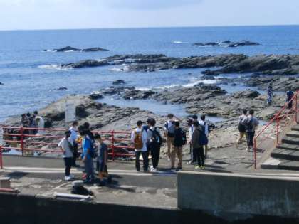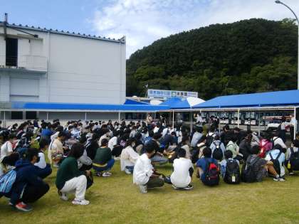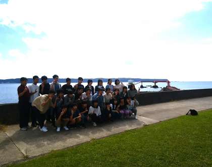 体験学習を午後から実施する奇数クラスの様子です。串本海中公園に到着し,記念撮影や散策,買い物を行います。