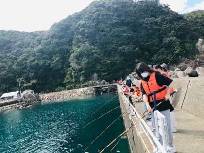 自分でエサをつけて大物を狙っています。今日の1番は30センチ越えの真鯛でした!!