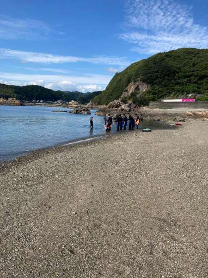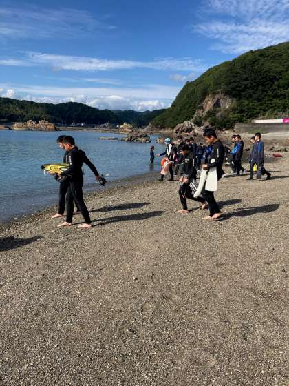 午後の体験(写真はスノーケル)が始まりました。それにしてもいい天気で気持ち良さそうです。
