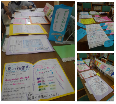 今週は1年8組のPOPの展示が図書館で行われています。「BEST OF POP」に選ばれた作品は、『アリバイ崩し承ります』。記事から切り抜いた文字を効果的に配置し、飛び出した吹き出しの言葉もウマイ!赤地に変形した白の紙も印象的です。『日本のすごい歴史人物伝』はコピーしたものを上手に使ってすっきり見やすく、内容がわかるようになっています。短編ミステリーの『二分間ミステリ』は外国の作家の作品ですが、独特のタッチのイラストと紹介文で読む気を誘います。『オス・メス「見分け方」事典』は折りたたんだものを開けると、動物が飛び出る仕掛け。優しいタッチの動物がステキ。さらに、大胆なイラストがPOPの半分以上を占めるものや、本の世界観がうかがえるもの、非常にユニークな形のものなど、おもしろいPOPがたくさんあります。そして、11月9日までは第75回読書週間です。今年は「最後の頁を閉じた。違う私がいた。」の標語が選ばれました。秋の夜長、皆さんも本の世界を楽しみ、読む前の自分とは違う自分を発見してください。