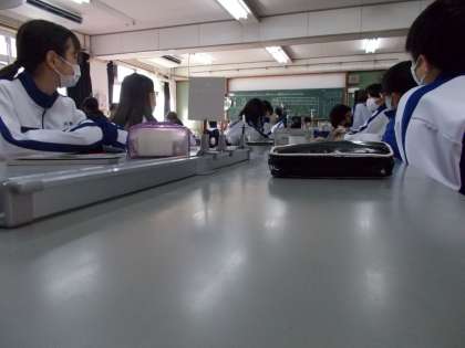 写真は今日の1年生理科の授業の様子です。現在凸レンズについて学習しています。レンズは私たちの生活で利用している多くのものに活用されており,必要不可欠なものです。例えばカメラ・携帯電話,めがねがあげられます。筆者は年々老眼が進行していて,最近近くの文字が見えなくなってきました。めがねはパソコンを扱う際の必須アイテムです。ないと自分が入力した文字などが見えません。また目の中にもレンズがあることを知っている人も多いでしょう。