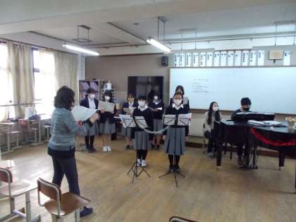 今日の14時から第1音楽室で「合唱部クリスマス会」が開催されました。「キリエ」の合唱から始まり,途中 部員・ギャラリーの生徒・先生が参加してレクリエーションを行いました。その後,モーツアルト作の曲,最後はみんなが知っているクリスマス曲のメドレーの合唱で締めくくりとなりました。