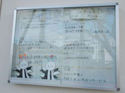 これらの取組の概要等は,写真のように生徒会のホワイトボードにも掲載されています。ぜひ見てください。