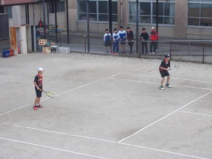 会場は本校。地の利を活かせるか。しかし予報通りに雨が降り出し,途中で中止となりました。続きは明後日の予定だそうです。中止までの間,本校選手の皆さんは,全体的に順調に勝ち進んでいます。