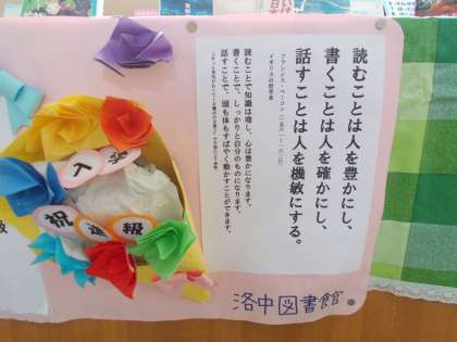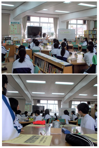 1年生の国語科では,今週から来週にかけて図書館活用講座と銘打った授業を実施しています。すでに図書館の本の貸し出しは開始してますが,どの場所にどのような本があるか,探したい本の見つけ方,今人気のある本はなんだろう,など洛北中図書館の紹介や活用方法,貸し出しの際の決まり等について学校司書の先生からお話をしていただきました。